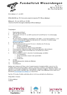 In nicht Mal zwei Wochen findet die diesjährige GV des Hauptvereins statt. Am Mittwoch, 10. Juli 2019, um 19.30 Uhr im Kirchengemeindehaus Wiesendangen.