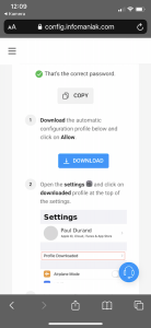 → Es erscheint eine Meldung, die besagt, dass das Profil in den Einstellungen des Geräts aktiviert werden müssen.