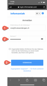 config.infomaniak.com aufrufen und mit dem Webmail Login anmelden.