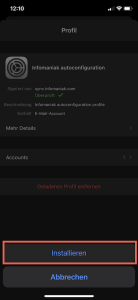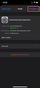 2. Das heruntergeladene Profil wird angezeigt und kann über "Installieren" installiert werden.