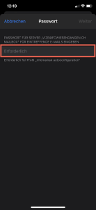 Achtung: Das wird hier das Mailbox Passwort benötigt, nicht das vom Webmail.