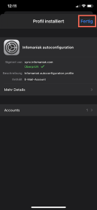 Das Profil ist erfolgreich installiert. "Fertig" drücken.