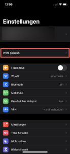 In der App erscheint eine Zeile "Profil geladen". Auf diese Zeile klicken.