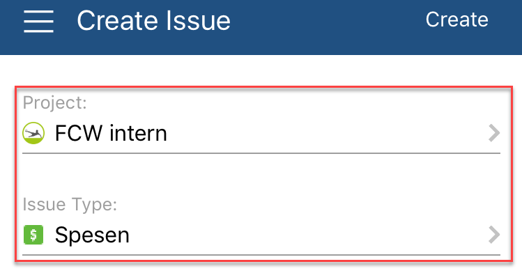 3. Projekt "FCW intern" und Vorgangstyp "Spesen" auswählen: