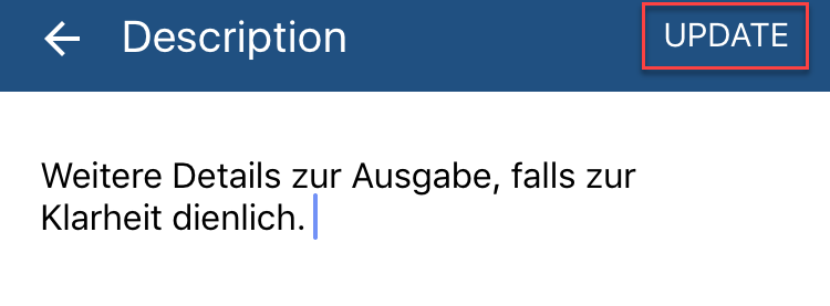 10. Falls weitere Details zur Klarheit nötig sind, auf "Beschreibung" klicken und Angaben eingeben. Zum Abschliessen auf "Update" klicken: