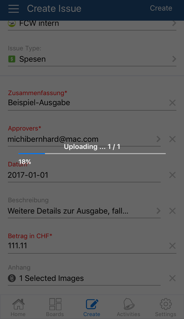 12. Auf "Anhang" klicken und das via direktem Photo oder via Photo-Gallerie anhängen: