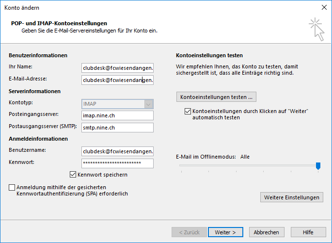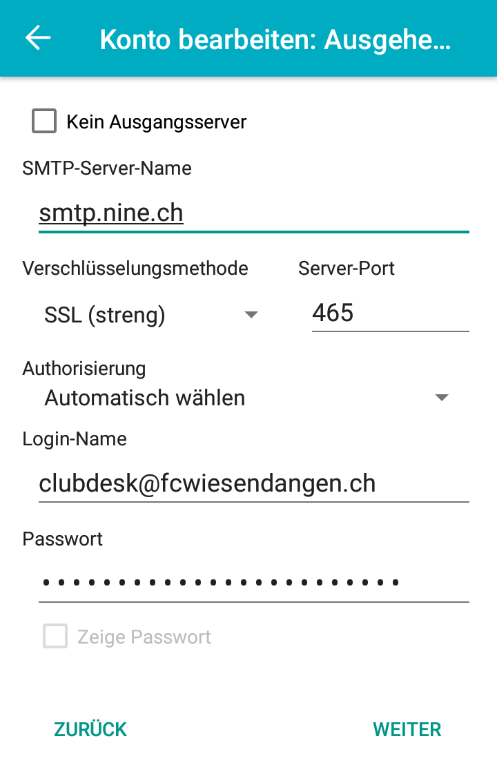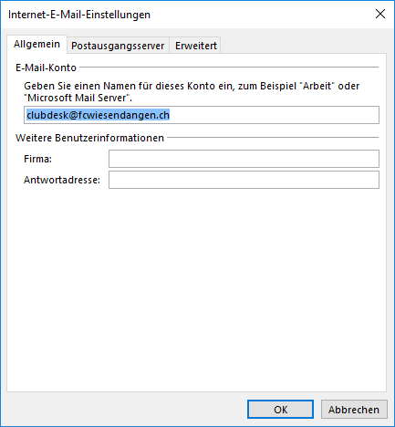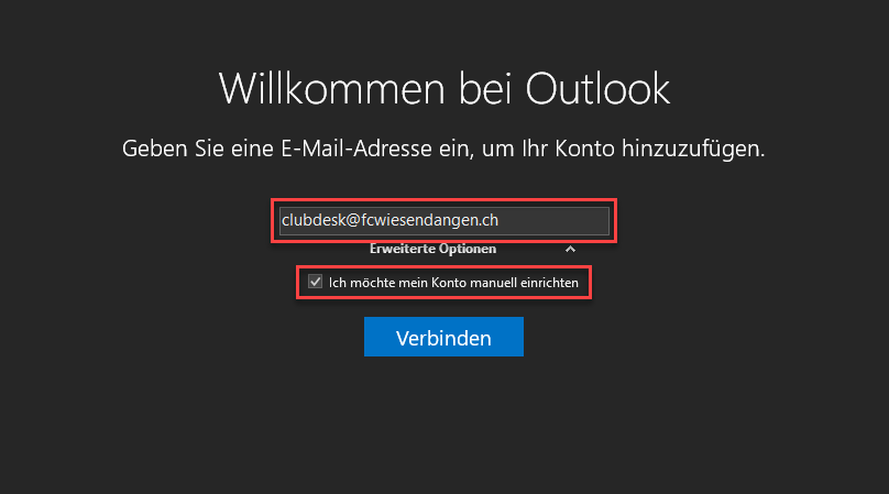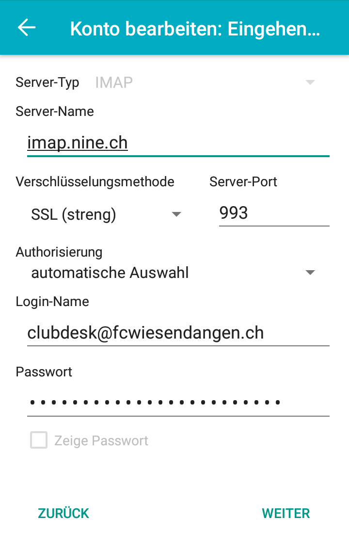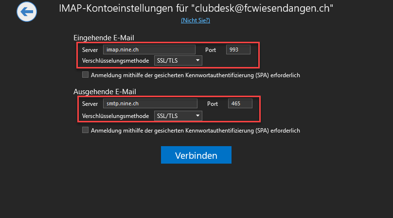 Einrichten von @fcwiesendangen.ch Emailadressen auf Geräten (ab 04.08.2021)